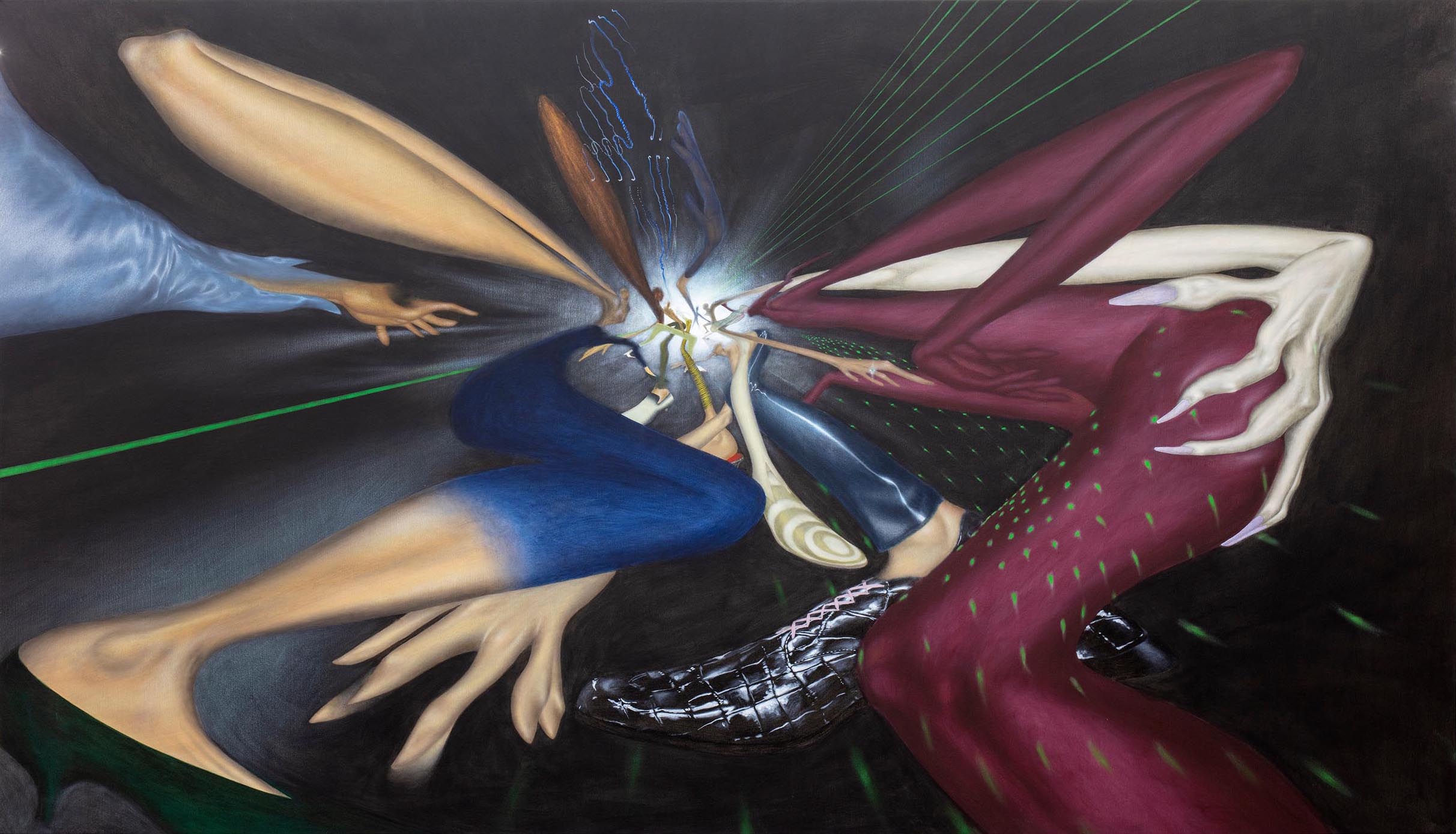 Samuel Guerrero, Destinados a seguir estrellas, 2021. Acrylic on canvas. 122 x 194 x 5 cm (48 x 76.37 x 1.96 in)