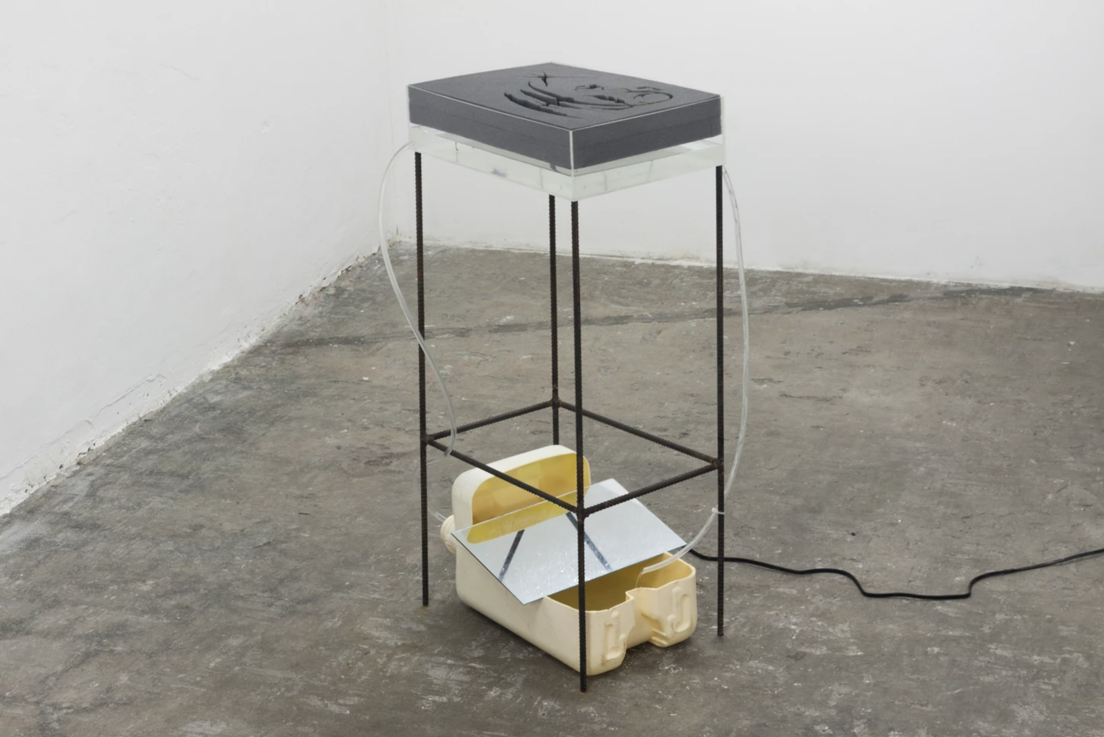 Samuel Guerrero, Caja con relieves, 2020. Foam, acrylic sheets, flowers, metal rods, plastic container, mirror. Dimensions variable