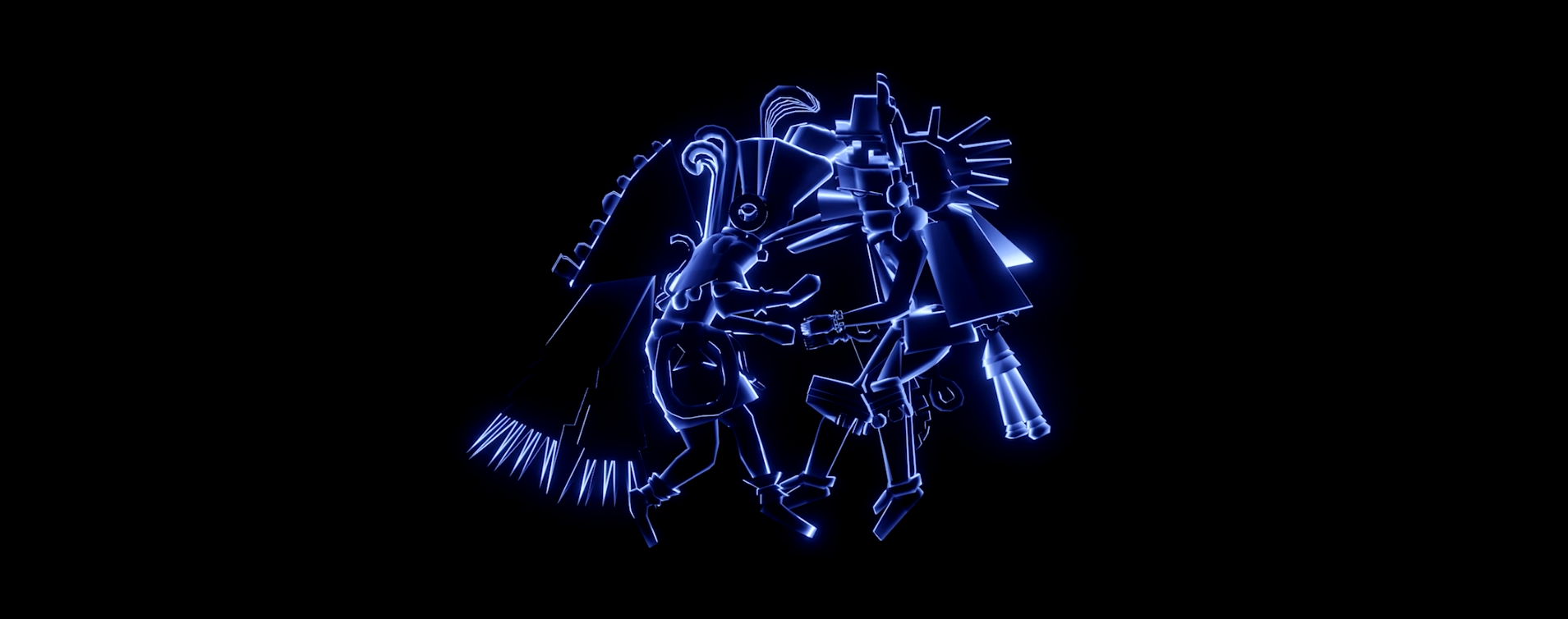 Samuel Guerrero, Oráculo para nuestros tiempos [Beso azteca], 2020. Hologram installation, video. 07:16 min