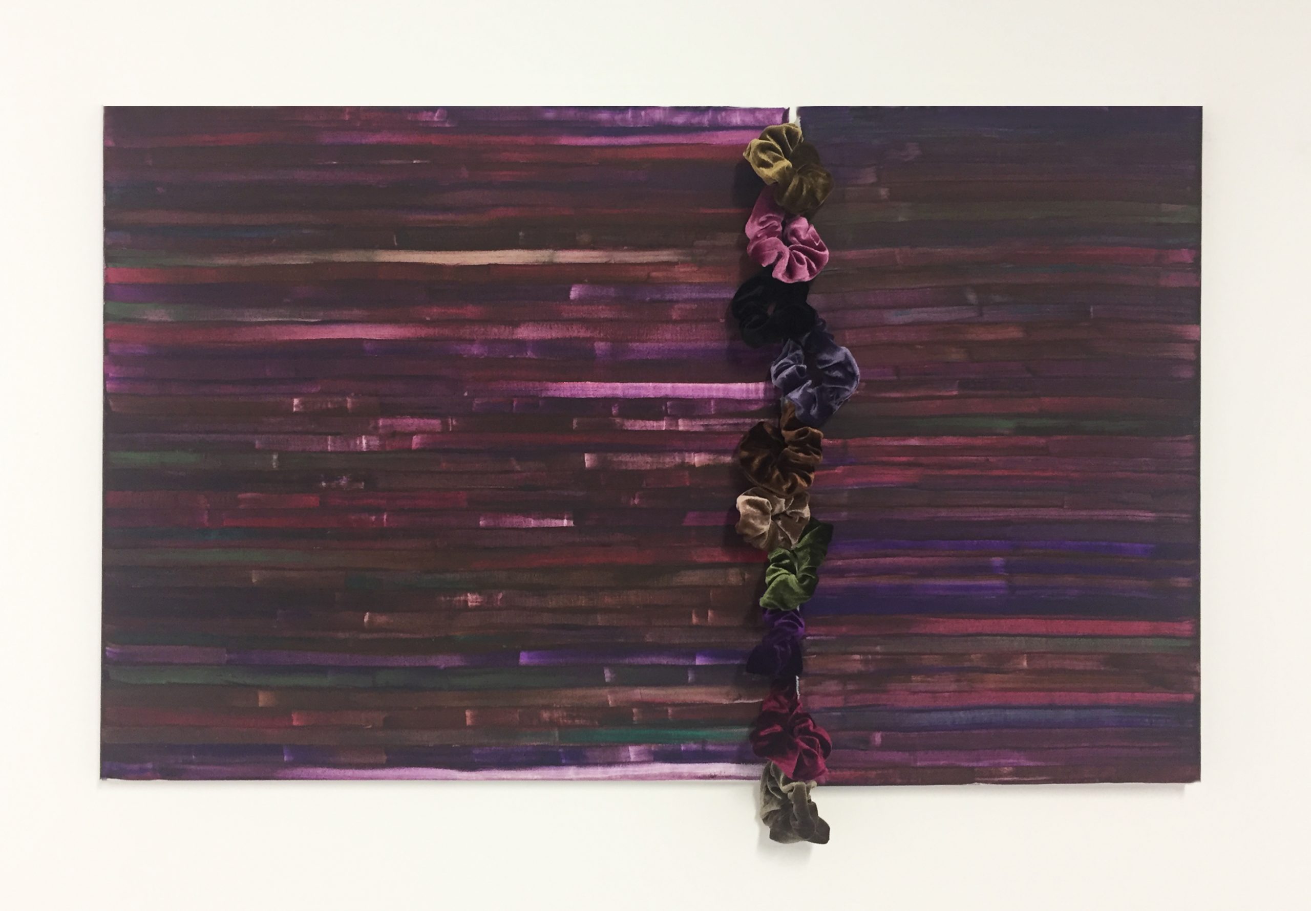 Sofia Berakha, Untitled, 2019. Oil, scrunchies, on canvas diptych. 75 x 45 cm (29.52 x 17.71 in)