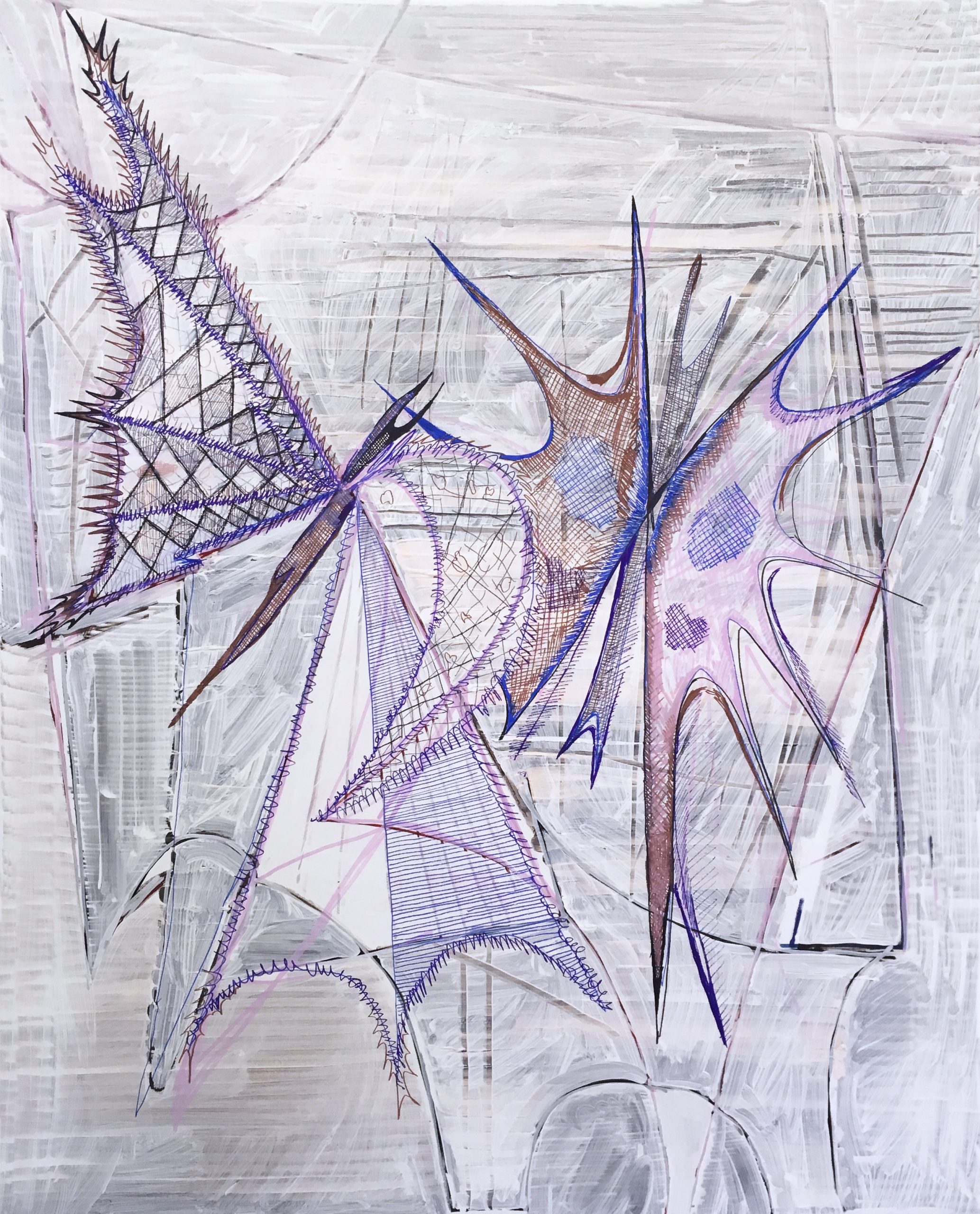 Sofia Berakha, Elegancia extrema, 2018. Acrylic, pen on canvas. 80 x 100 cm (31.49 x 39.37 in)