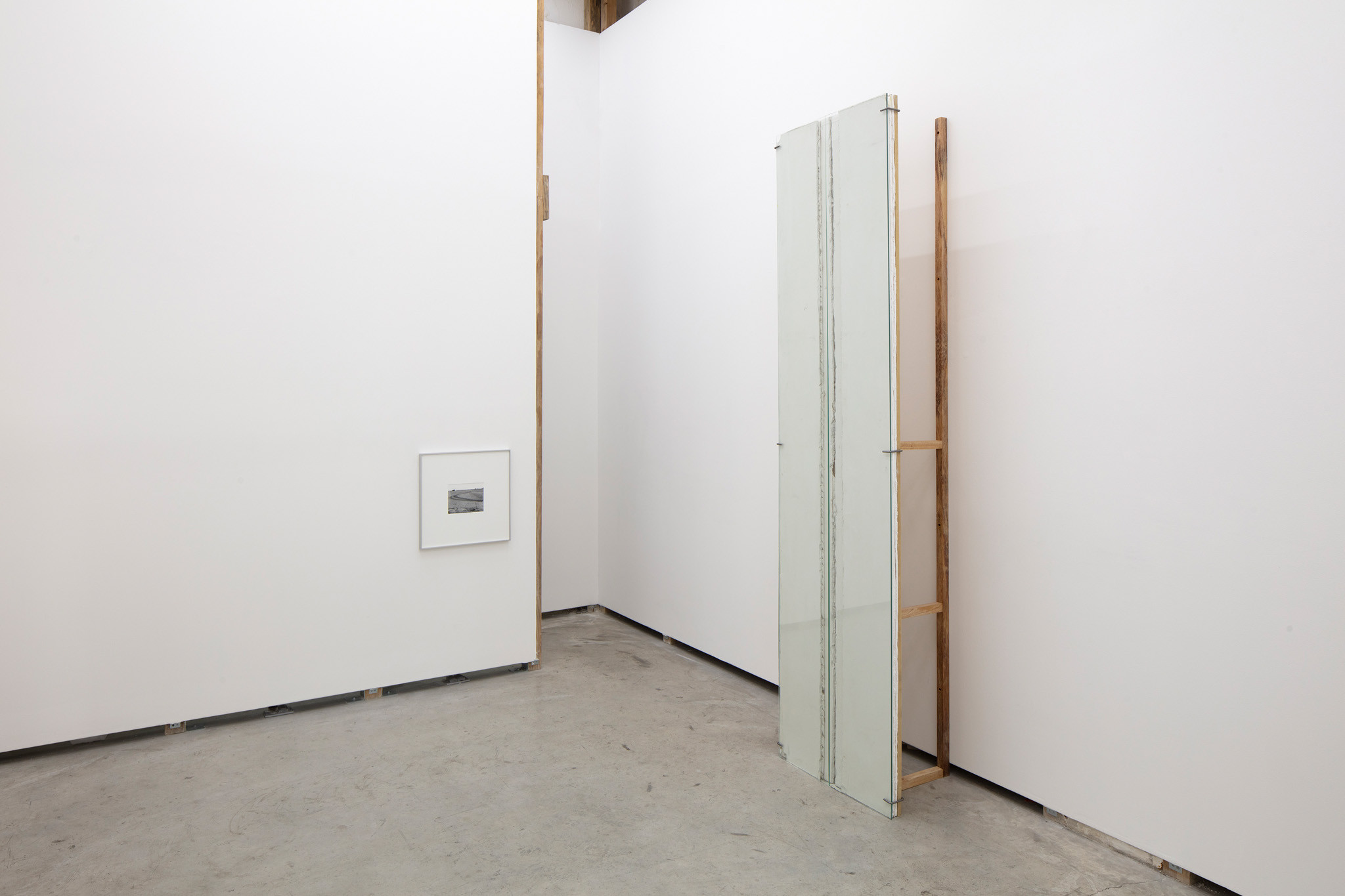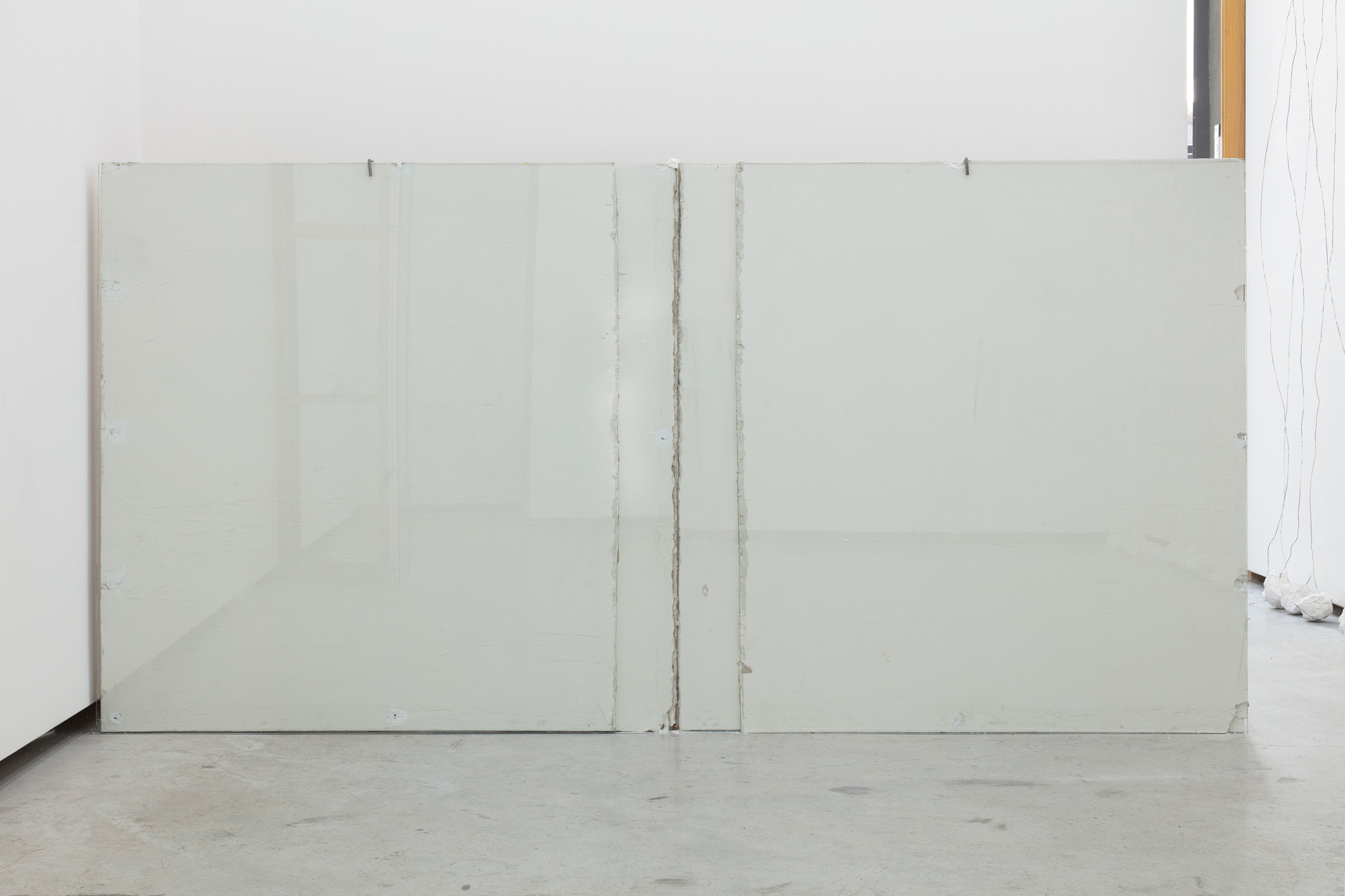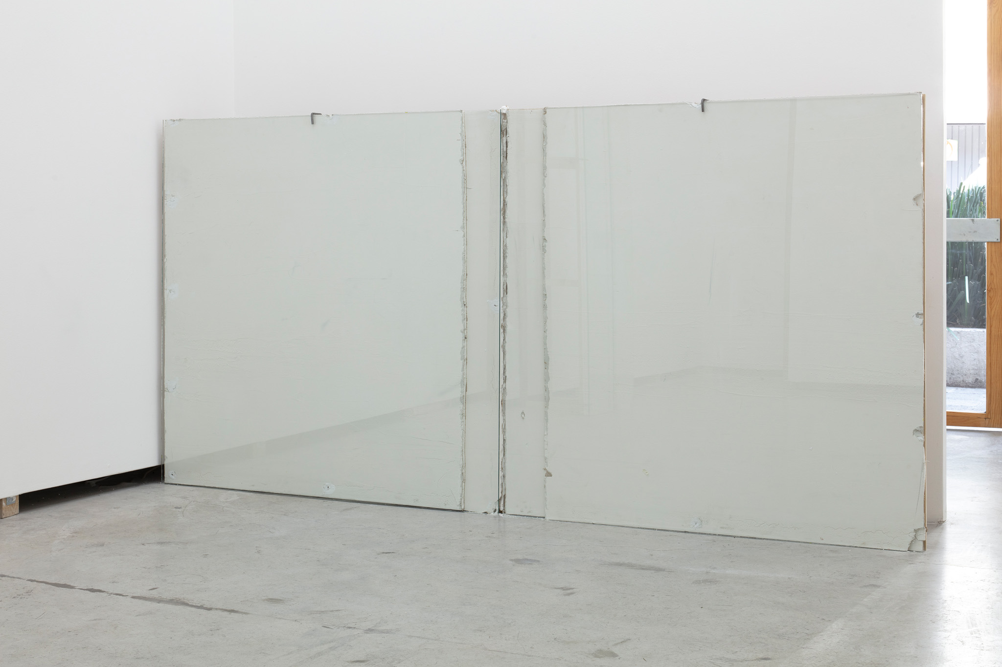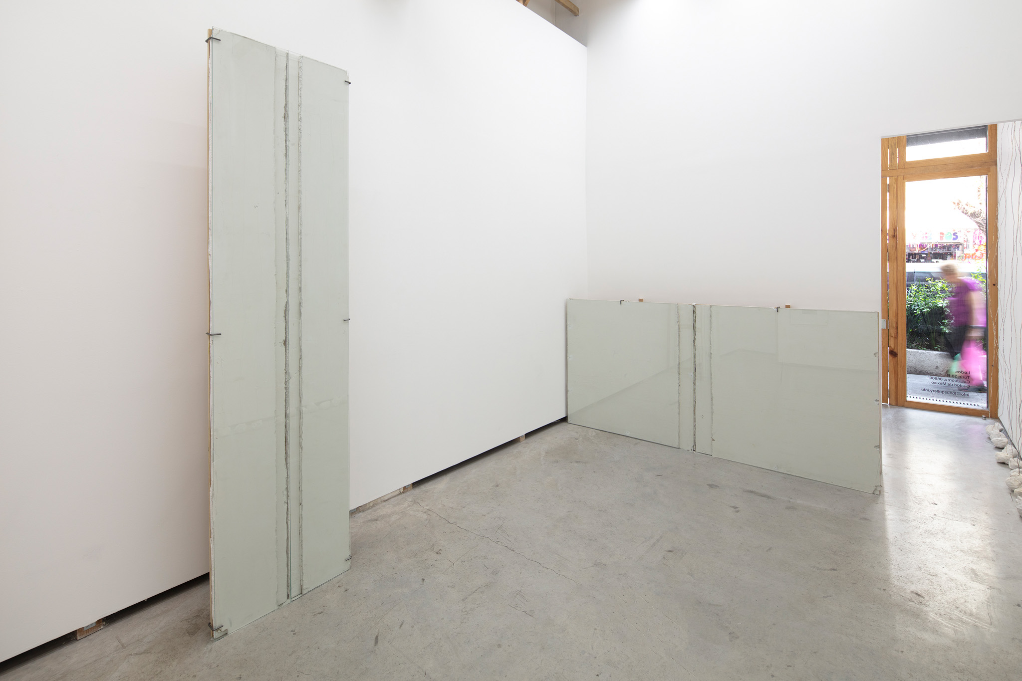 Dos muros de 118 x 118 cm cada uno, que casi se tocan entre sí a una distancia de 30 cm del muro.