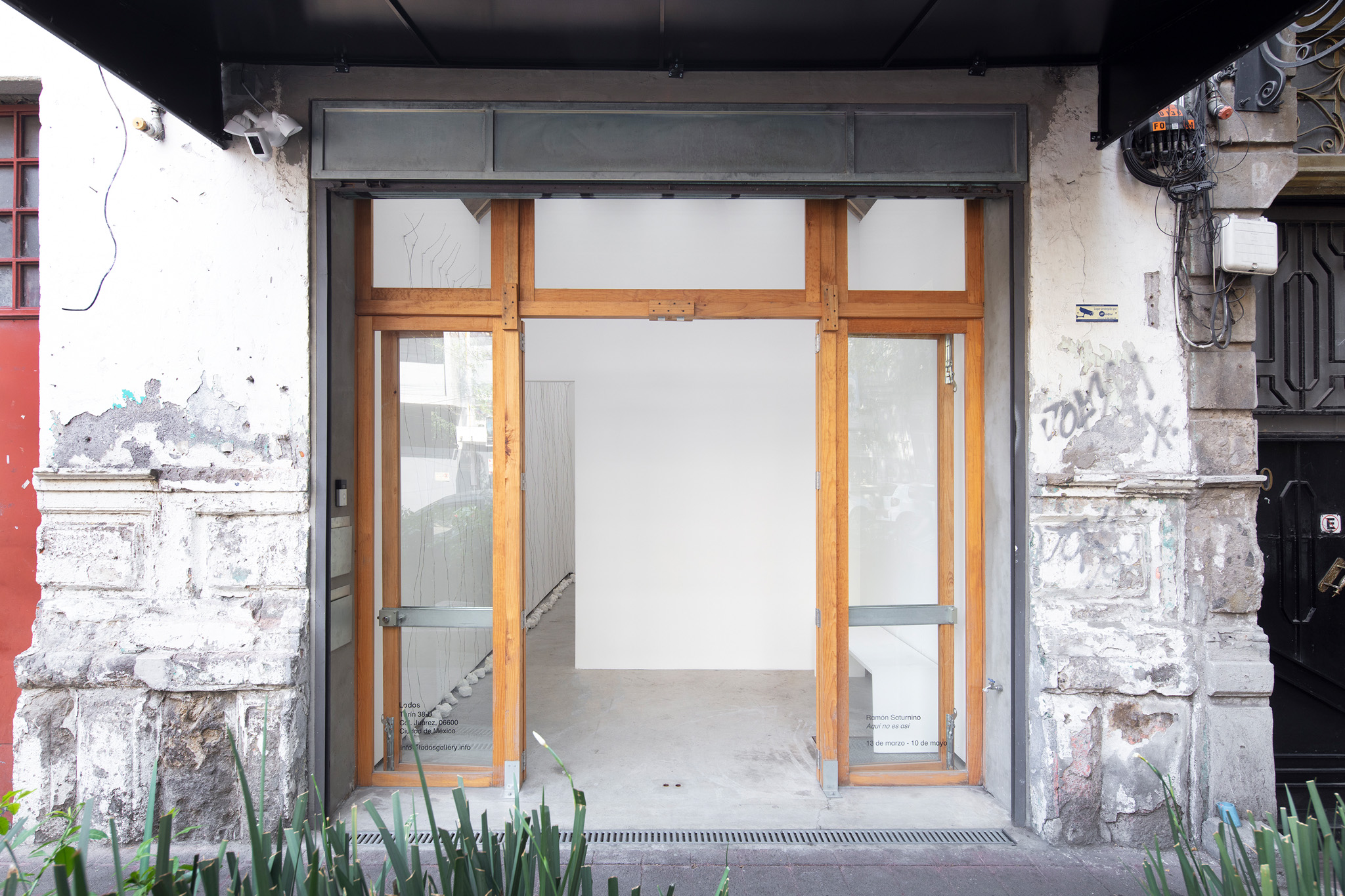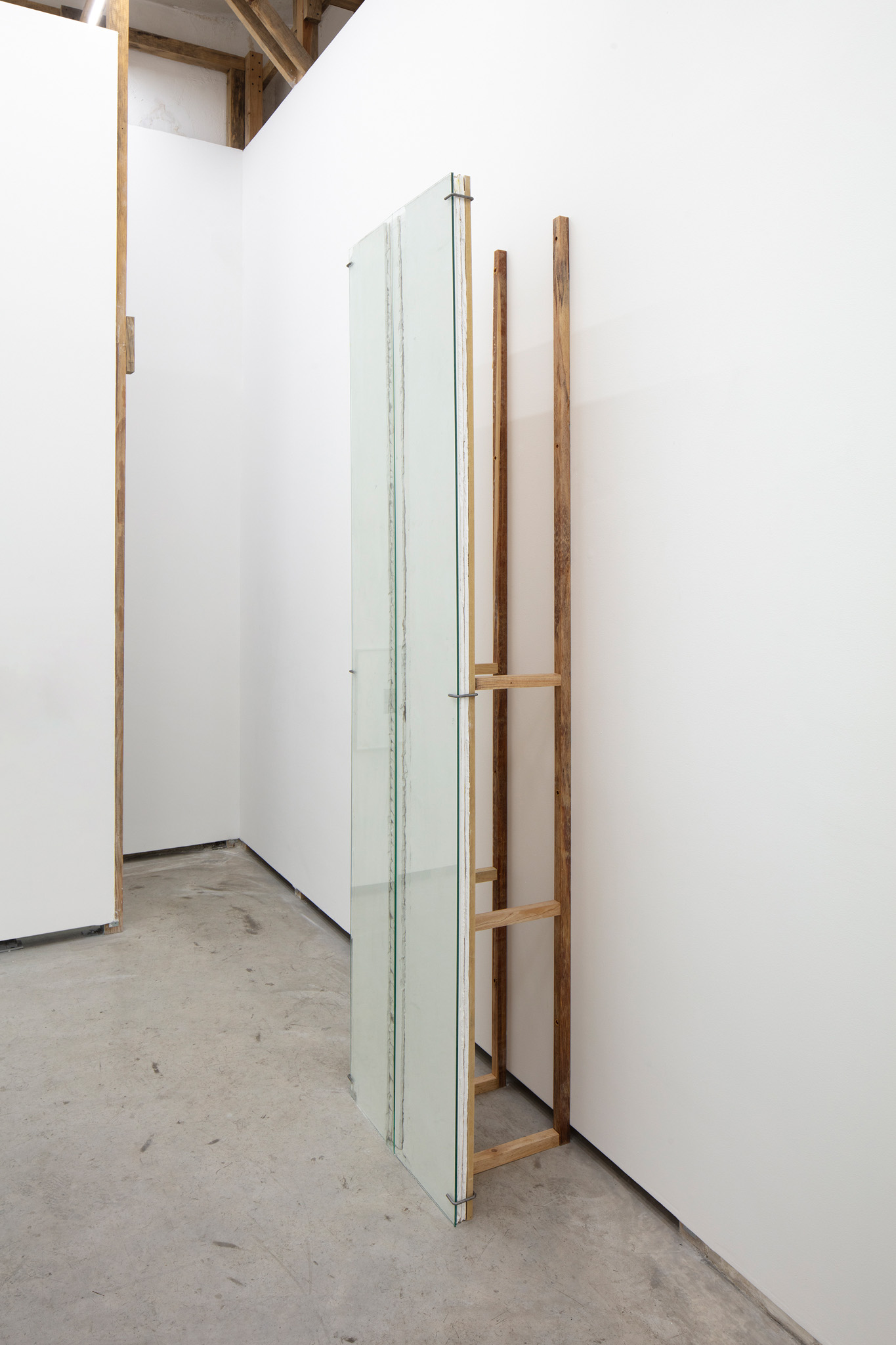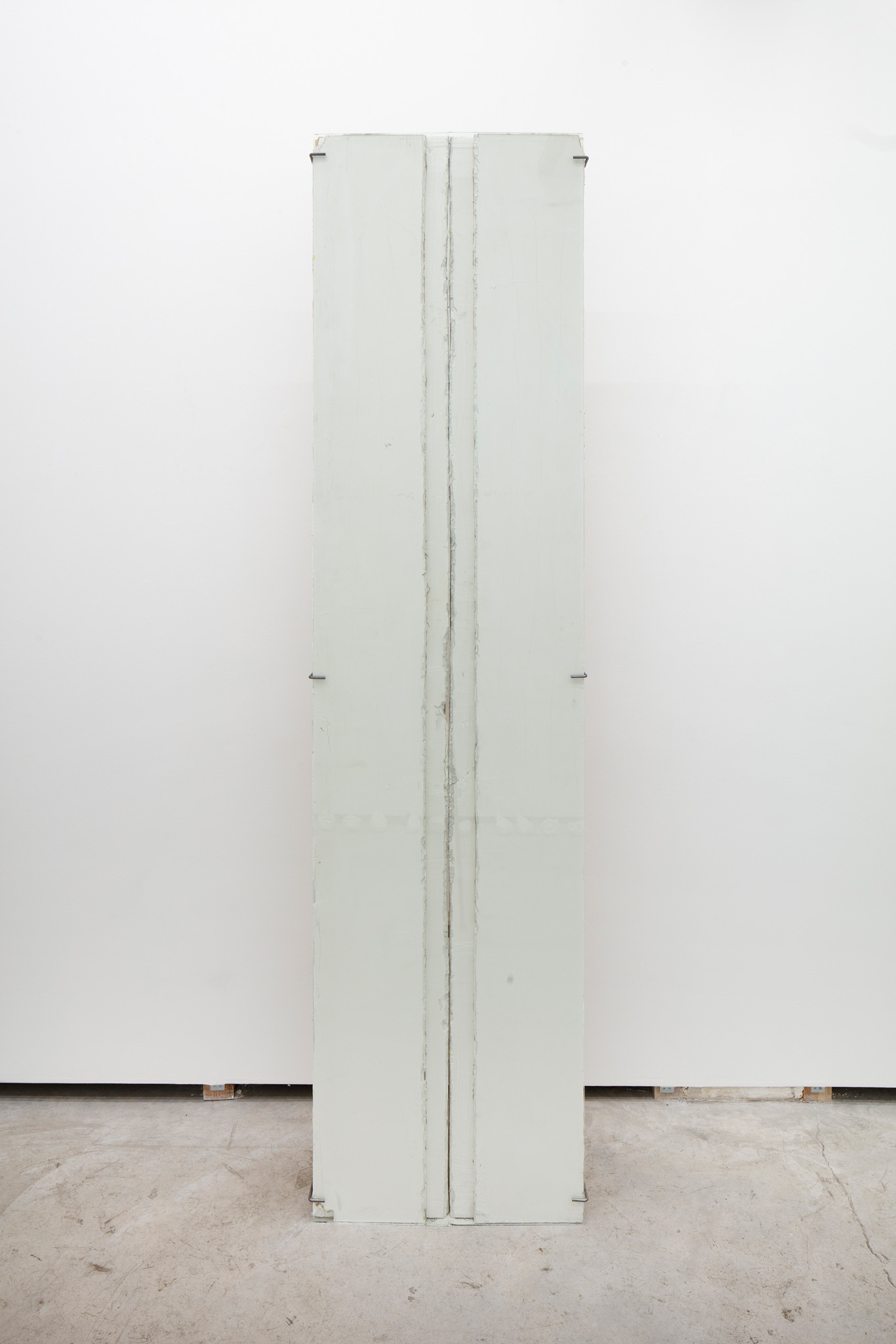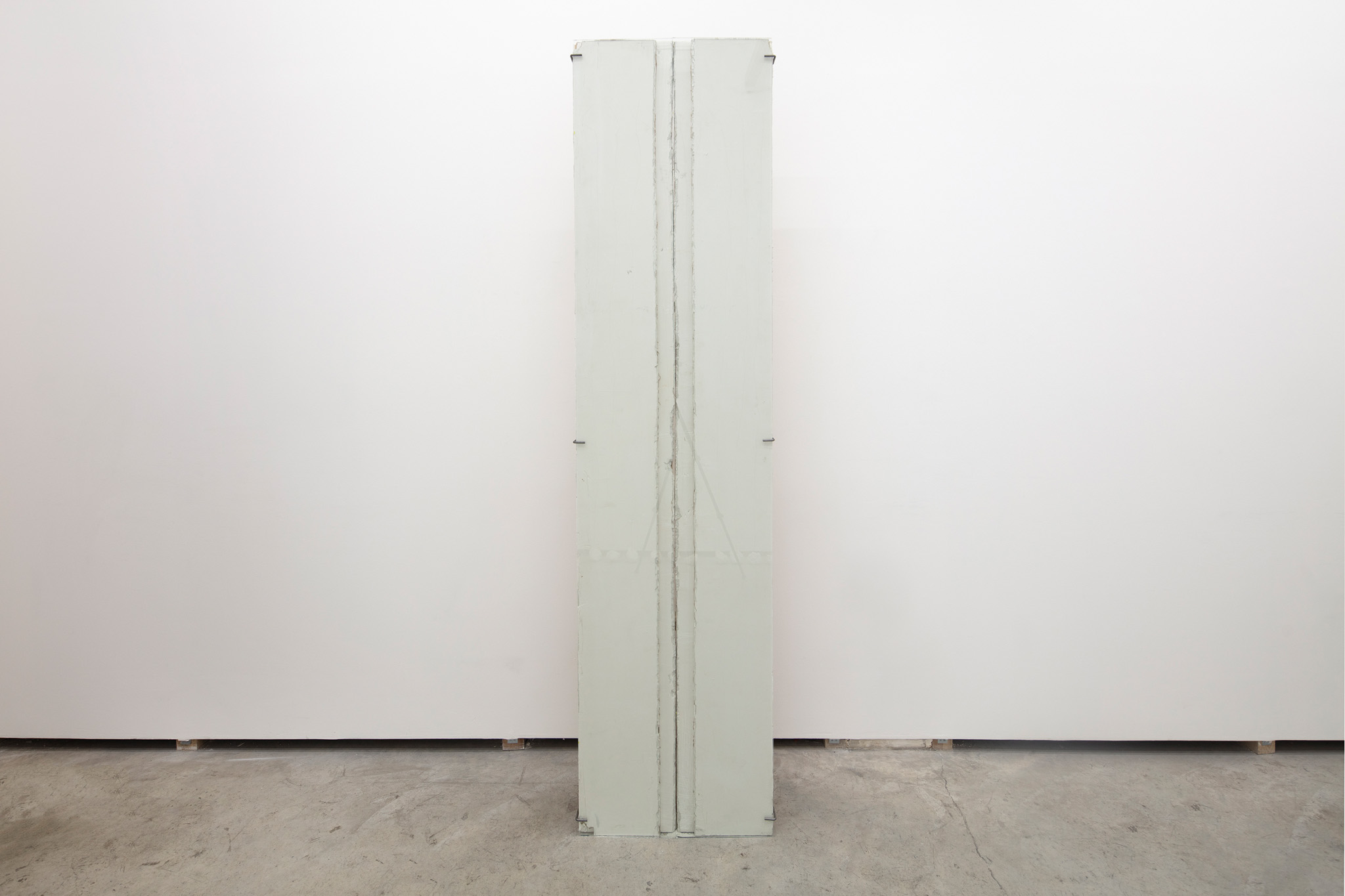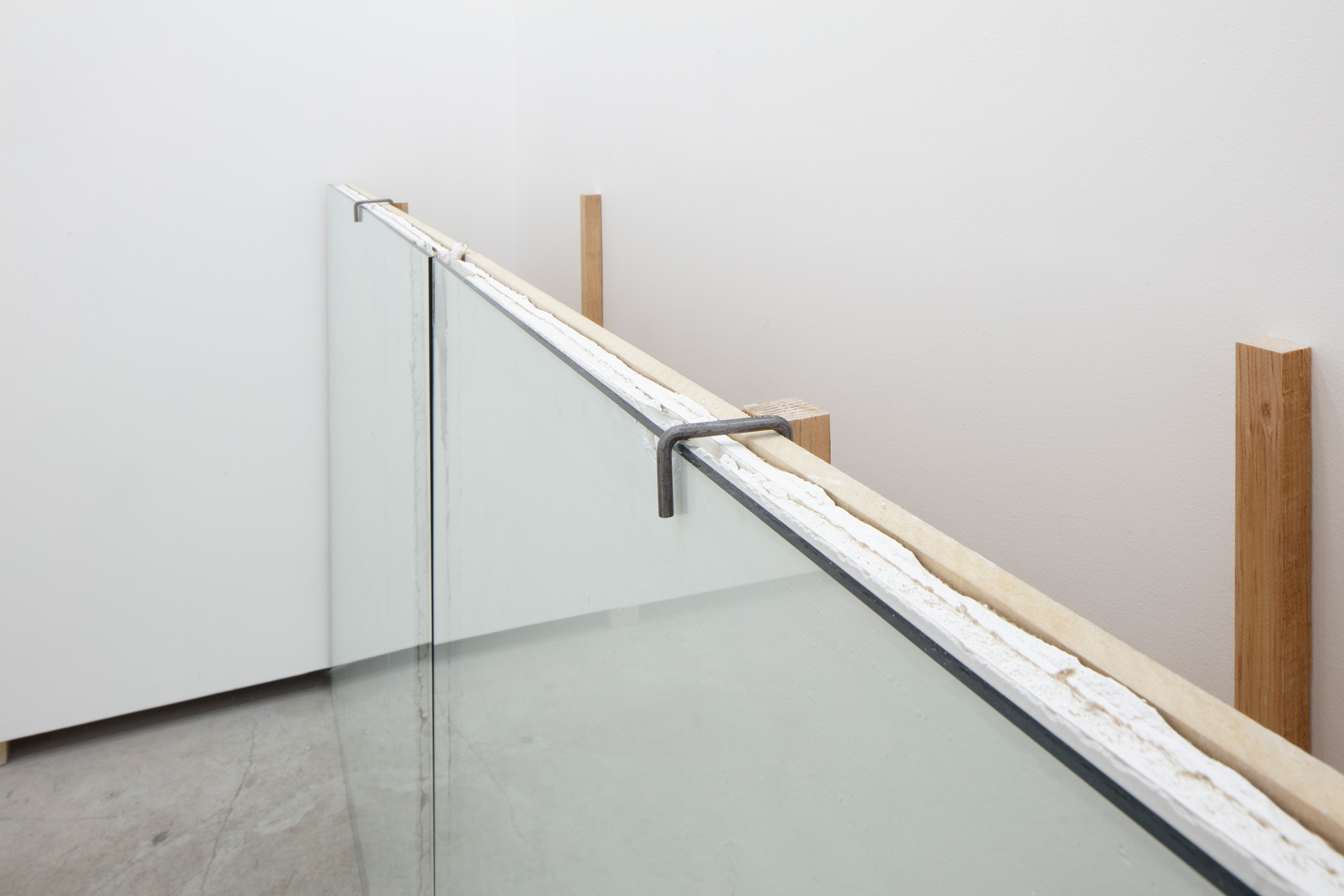 Dos muros de 118 x 118 cm cada uno, que casi se tocan entre sí a una distancia de 30 cm del muro.