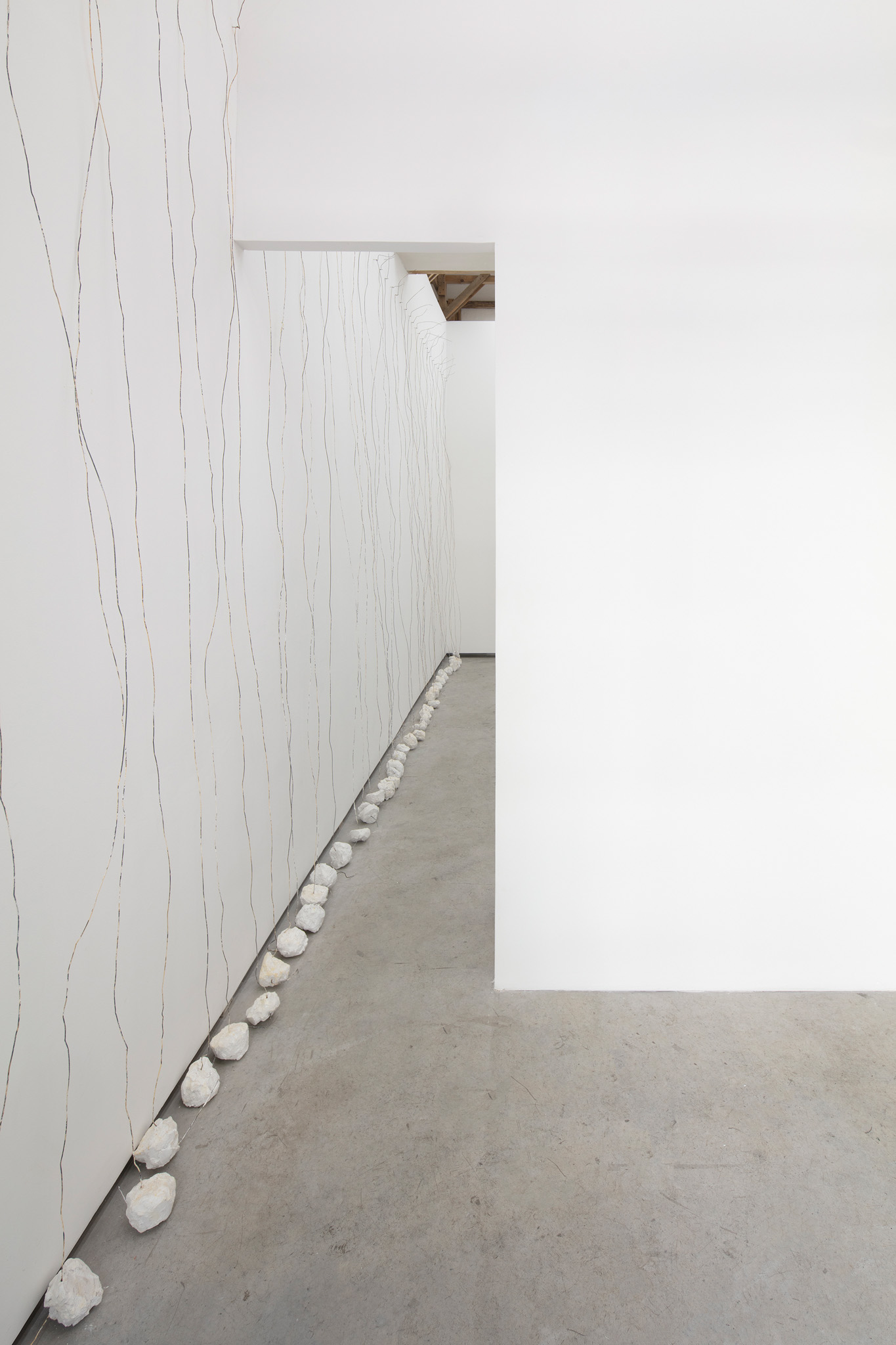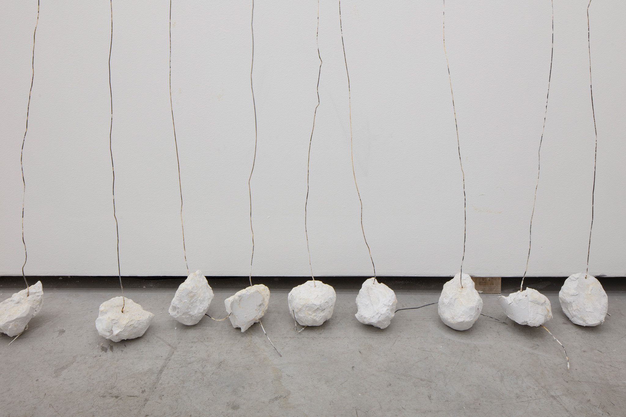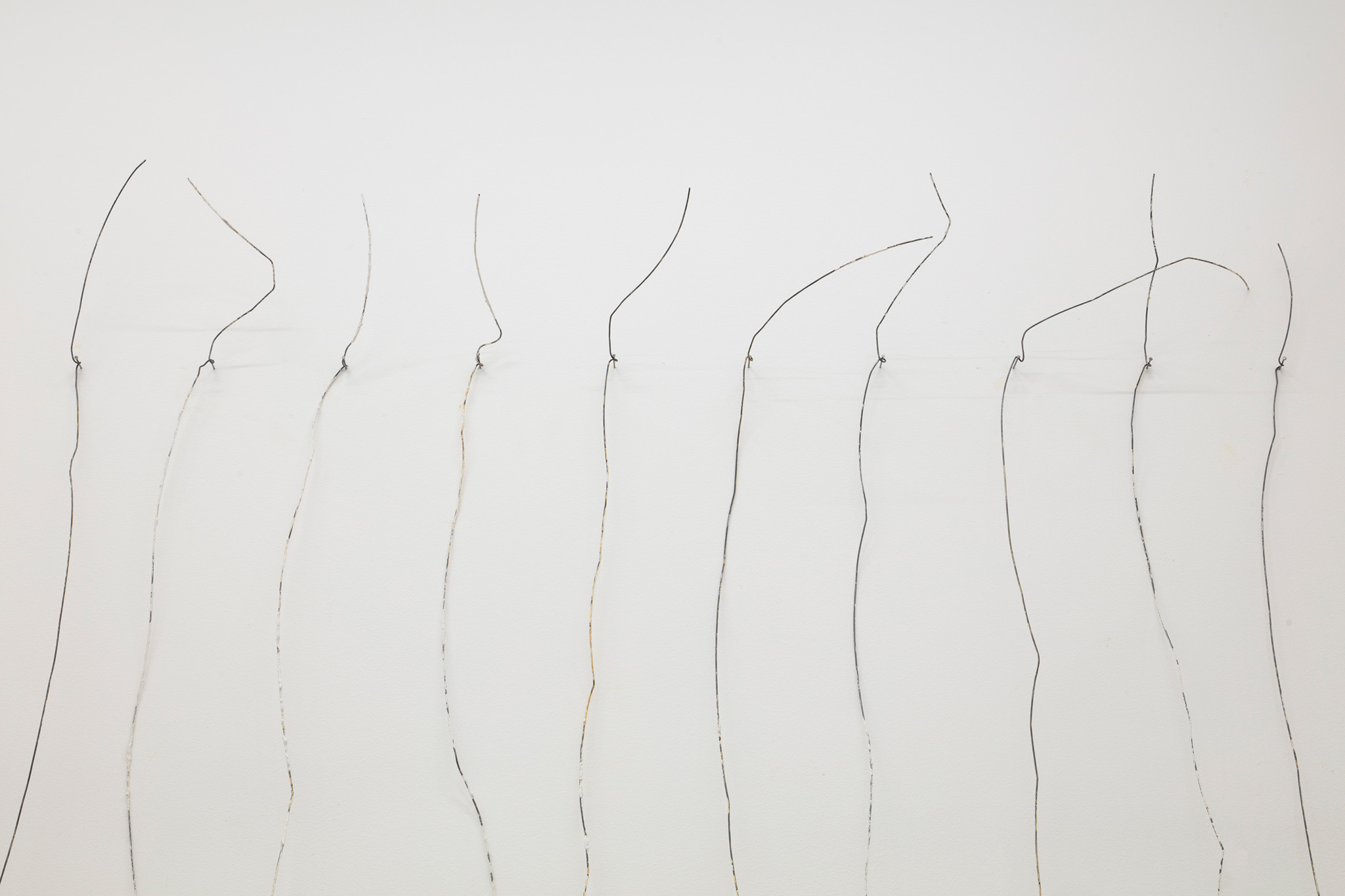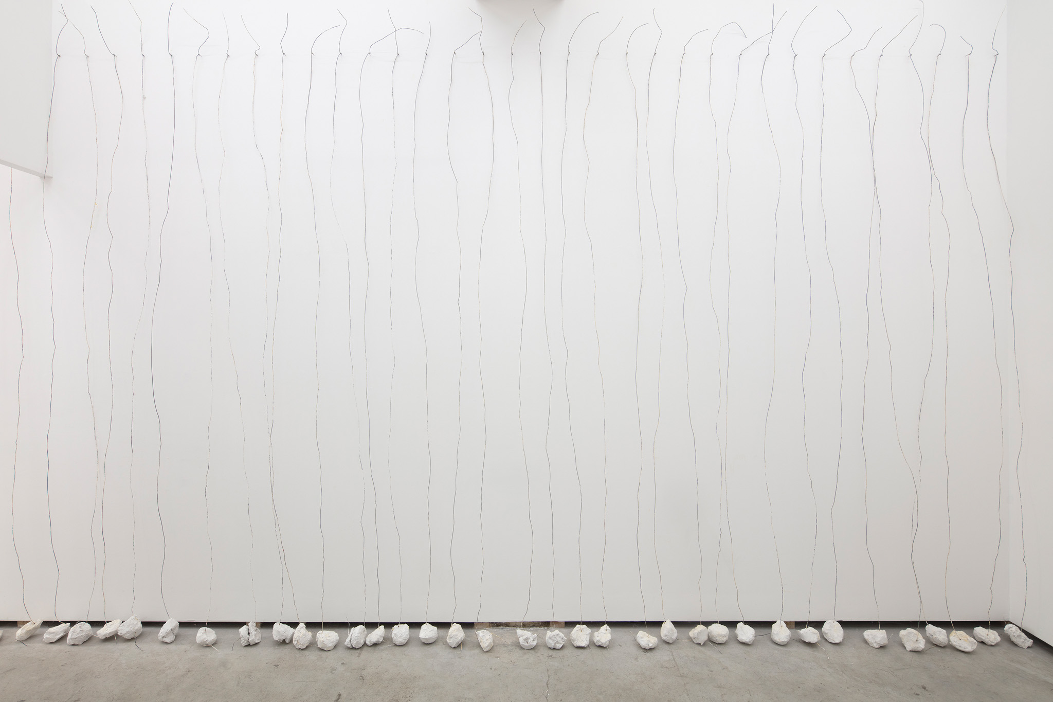 Escultura realizada a partir de la repetición de un objeto: alambre, 3,15 m, con una base de yeso, 1 kg, sobre una pared, cualquier pared. Sujetado por un clavo a una altura de 30 cm por debajo del techo a 15 cm de separación a lo largo de la pared seleccionada.. La escultura se instala para cubrir toda la longitud de la pared seleccionada con un límite de 1023 km.