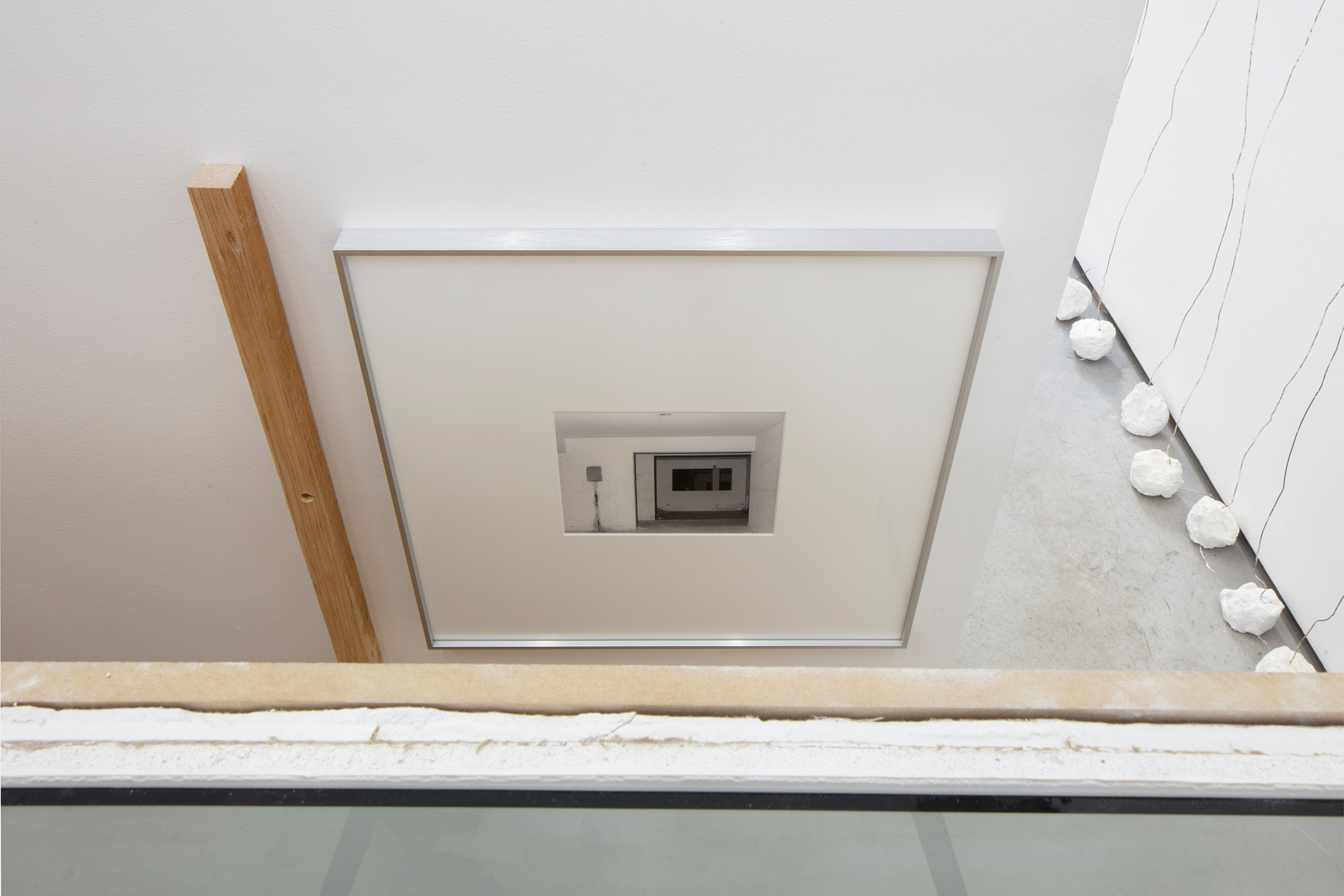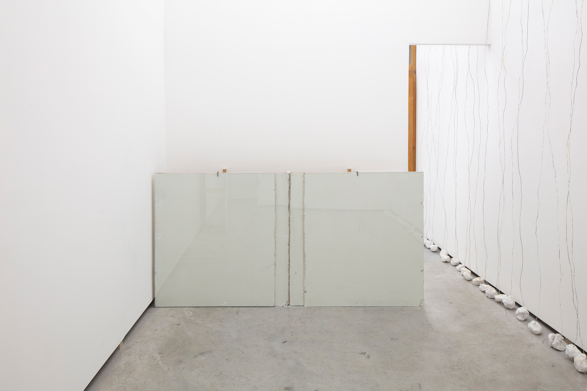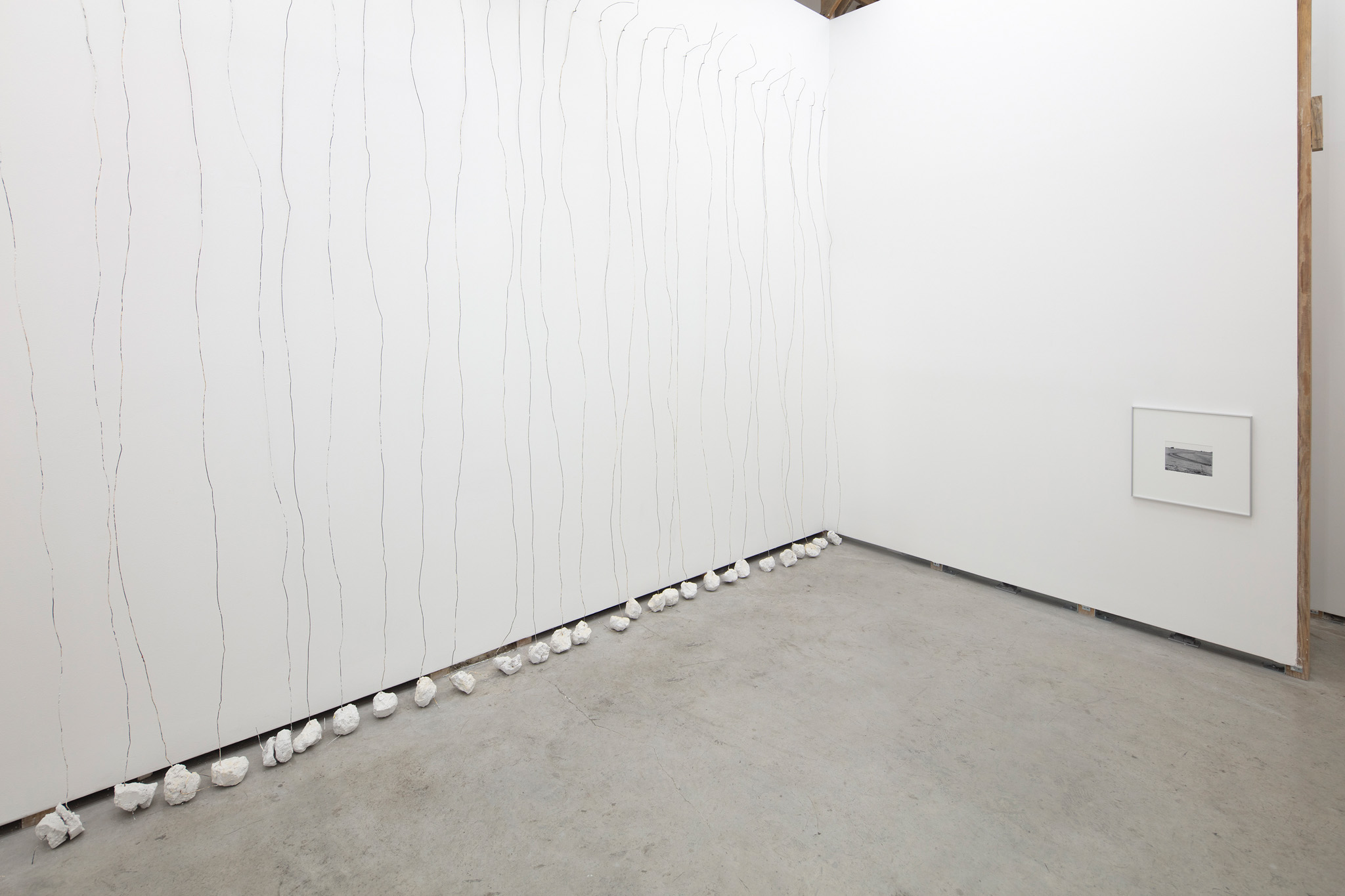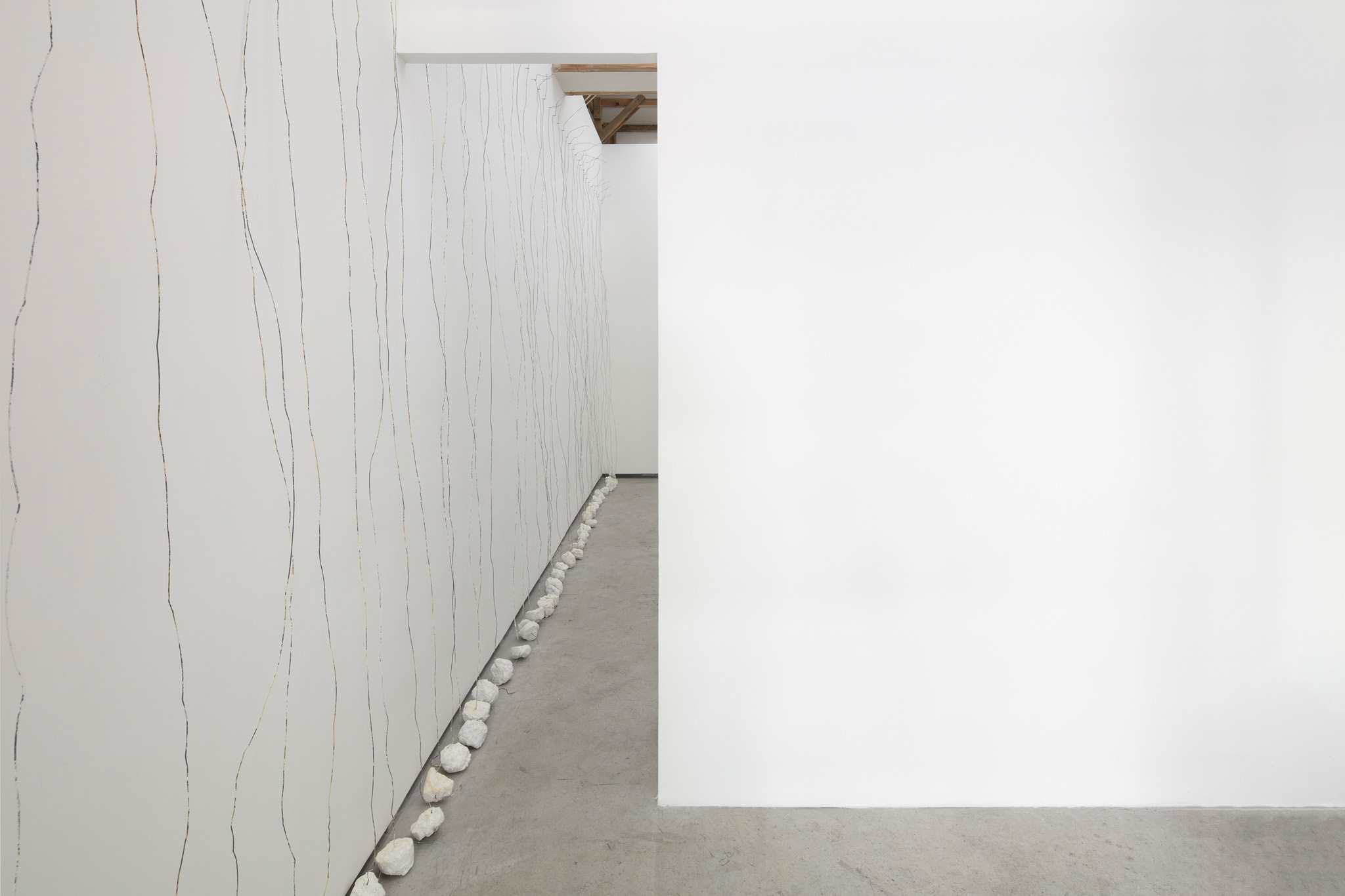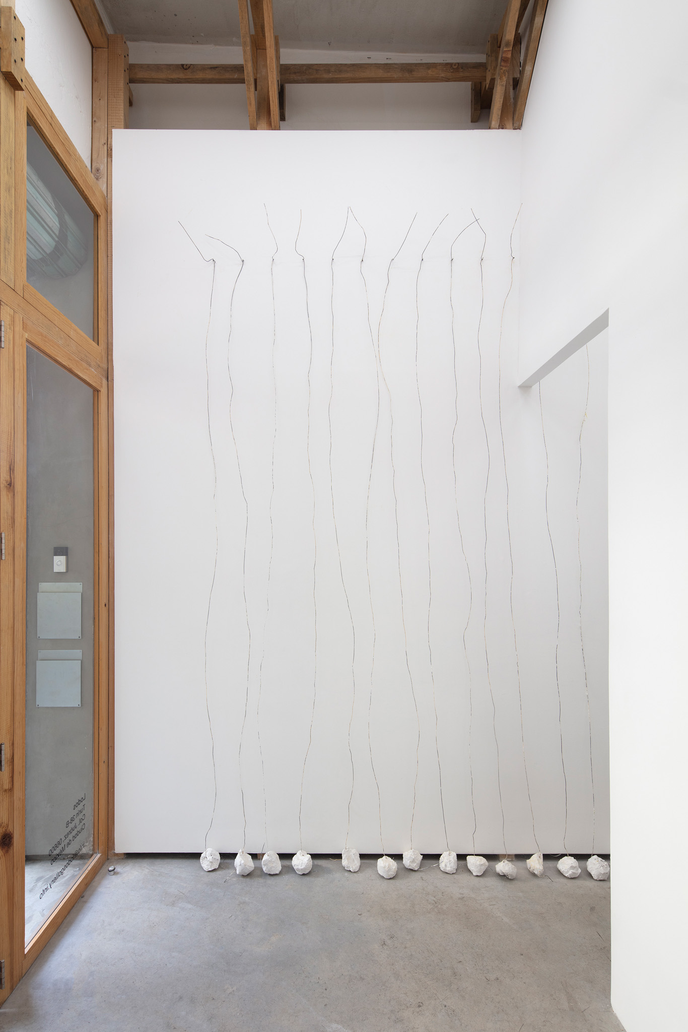 Escultura realizada a partir de la repetición de un objeto: alambre, 3,15 m, con una base de yeso, 1 kg, sobre una pared, cualquier pared. Sujetado por un clavo a una altura de 30 cm por debajo del techo a 15 cm de separación a lo largo de la pared seleccionada.. La escultura se instala para cubrir toda la longitud de la pared seleccionada con un límite de 1023 km.