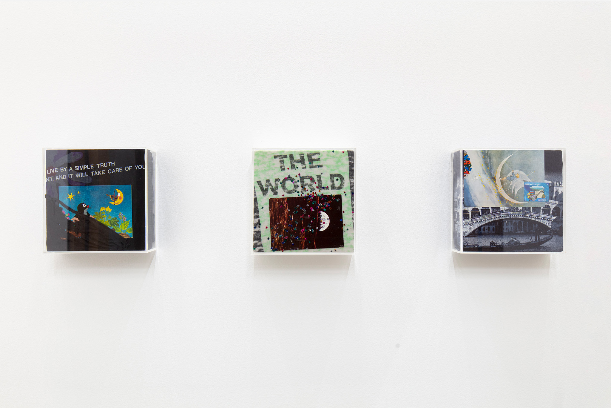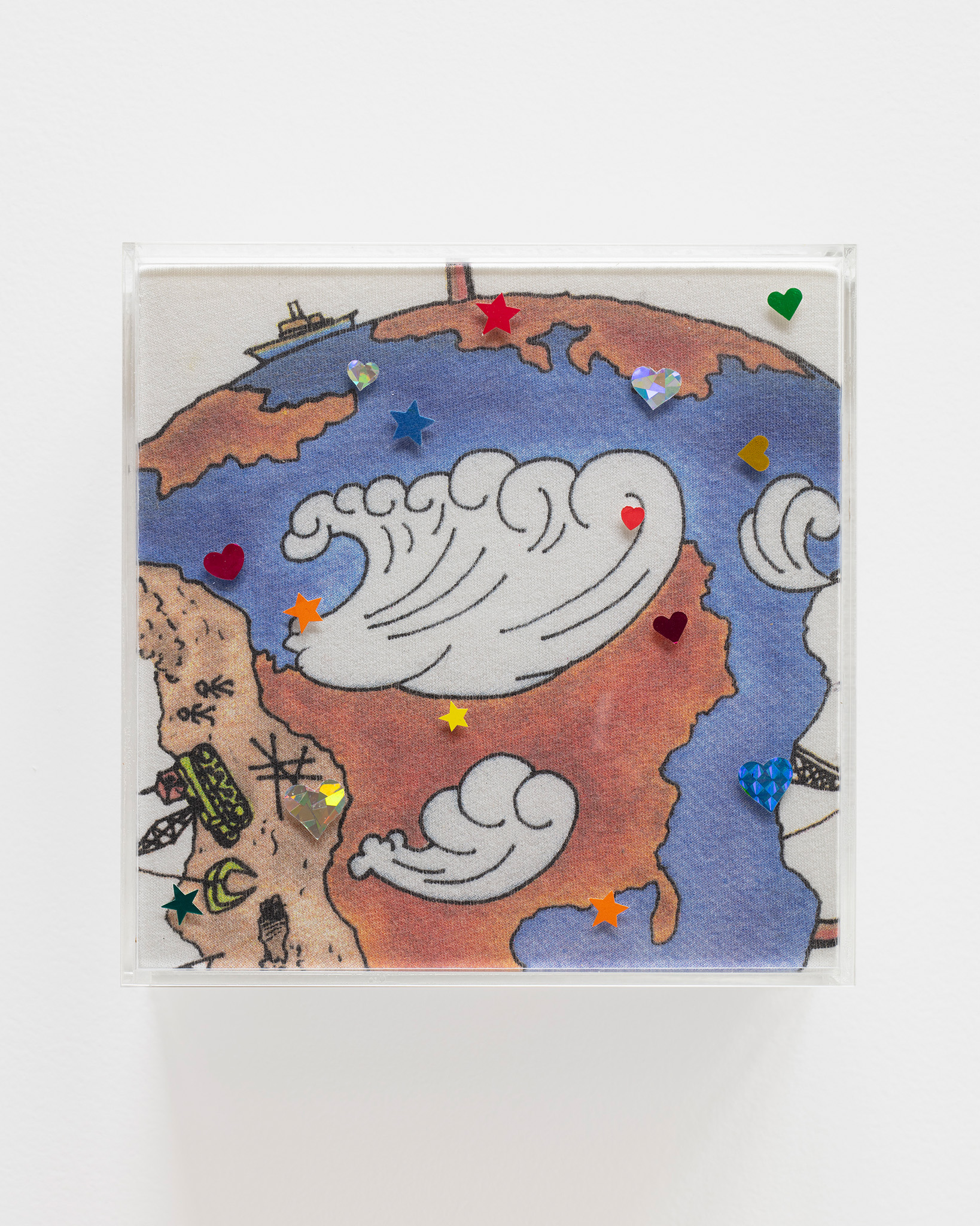 T-shirt, postcard, metallic stars, plexi