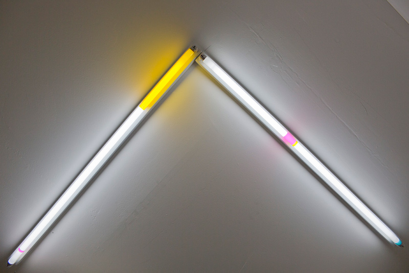 Noah Barker, Didatic Divergence Facility, 2016. T8 bulbs, colored gels. Dimensions variable