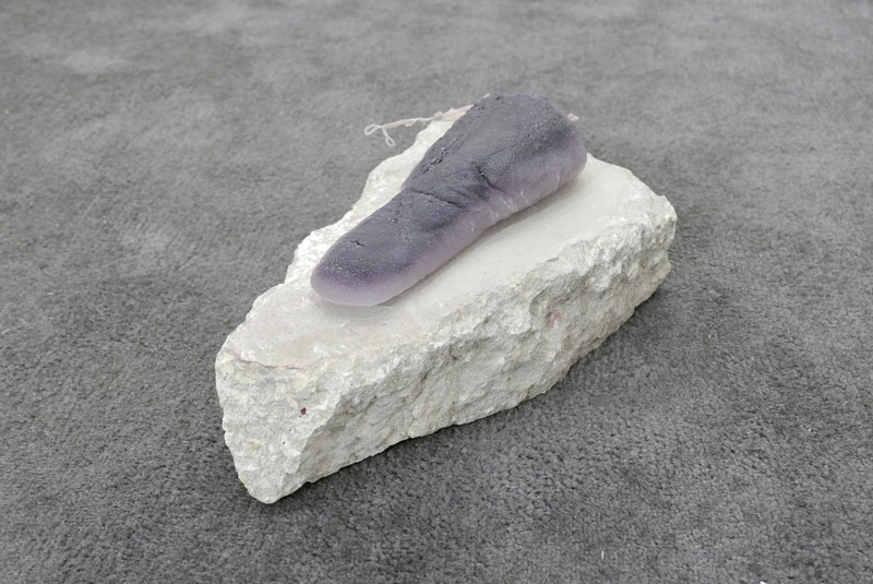 Tongue Debt, 2015. Paraffin wax, crayon, clay, string. 13 x 4 x 3 inches