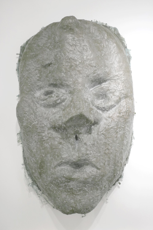 The Sound of Music (Left), 2015. Hot glue, school glue, caulk, resin, bleach, bondo, all purpose putty, rubber cement, white pencil, modeling clay, permacore thread on canvas. 52 x 48 inches.