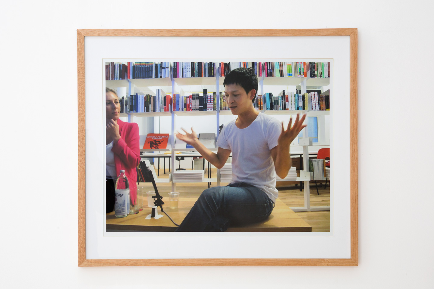 Rainer Ganahl, Seminar/Lecture, Danh Vo, Elena Filipovic, Danh Vo in conversation with Elena Filipovic, Artist Space, New York 9/18/2010, 2010. 4 Photographs, Inkjet on archival photographic paper. 53 x 63 cm each.