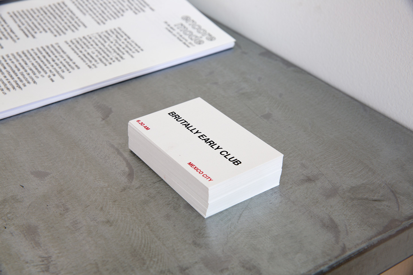 Brutally Early Club, Mexico City, 2017. Calling card designed by Zak Kyes