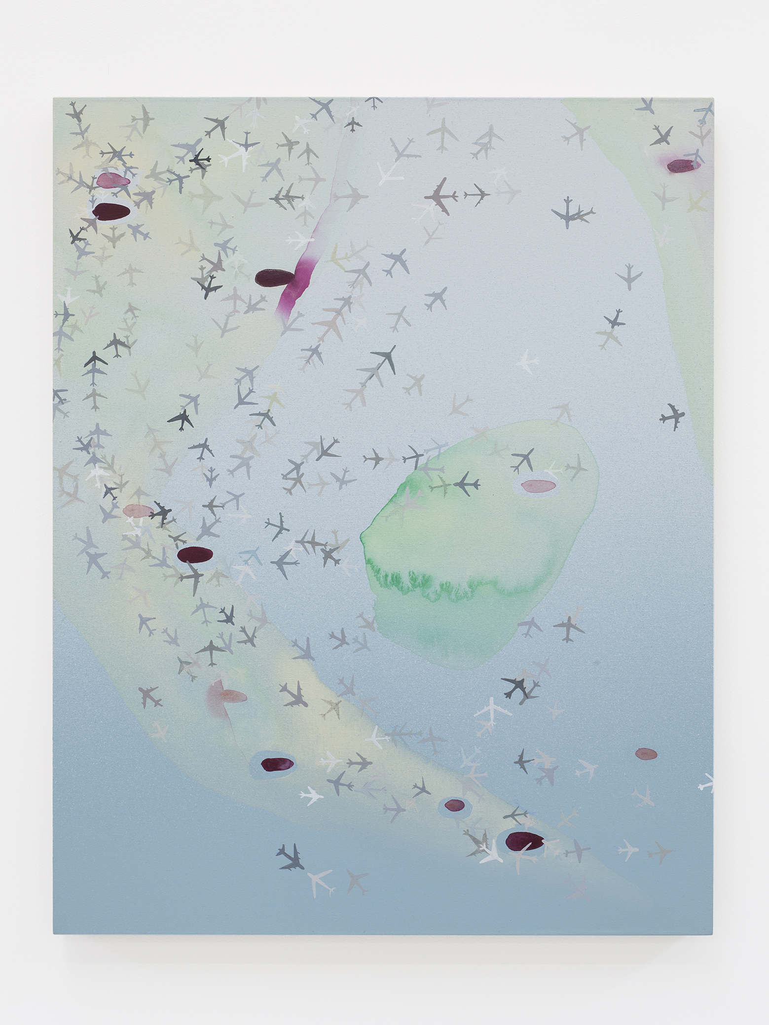 Elsa-Louise Manceaux, Live Air Traffic #1, 2019. Acrylic gouache on colored gessoed linen. 80 x 64 x 4 cm